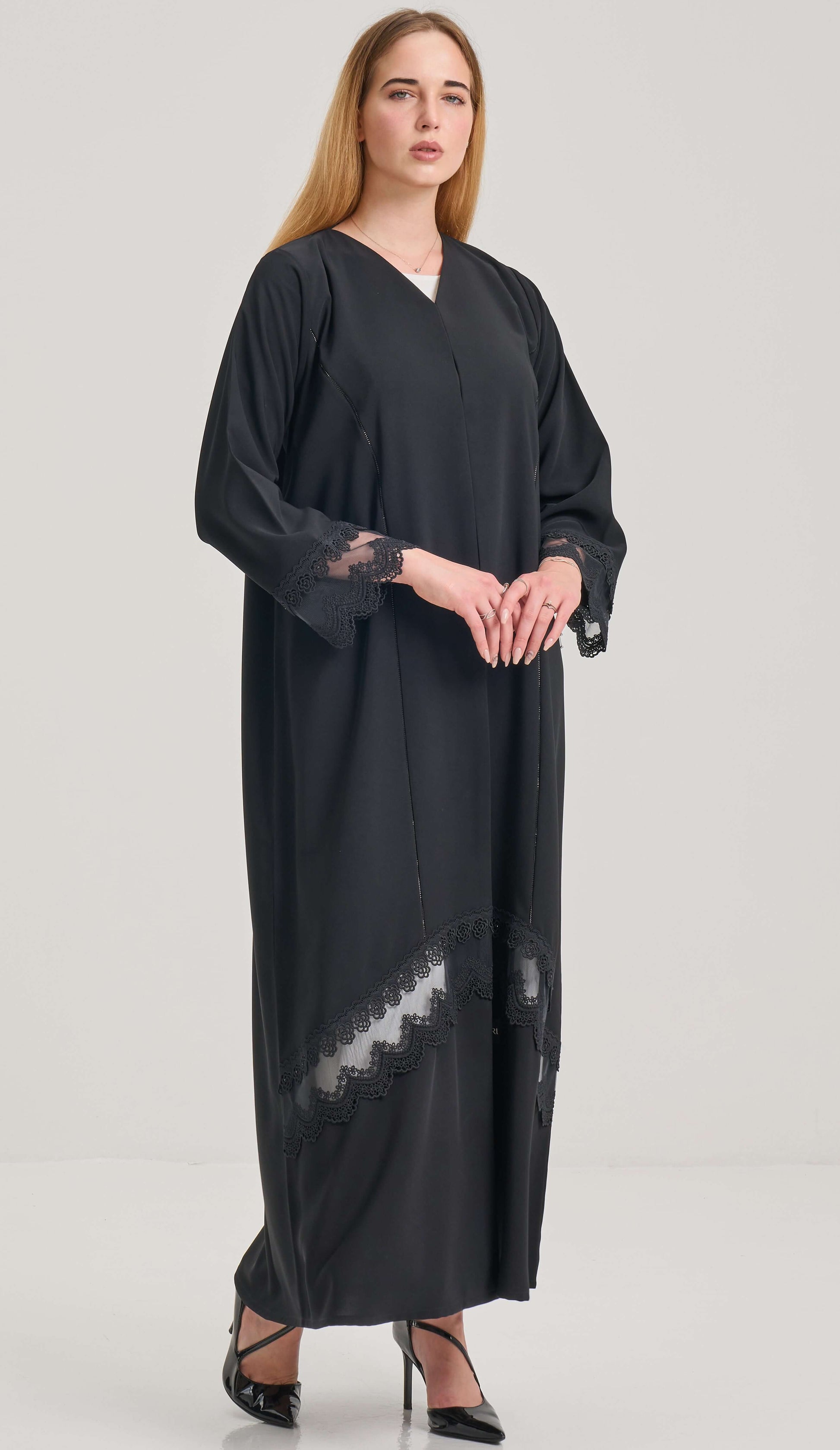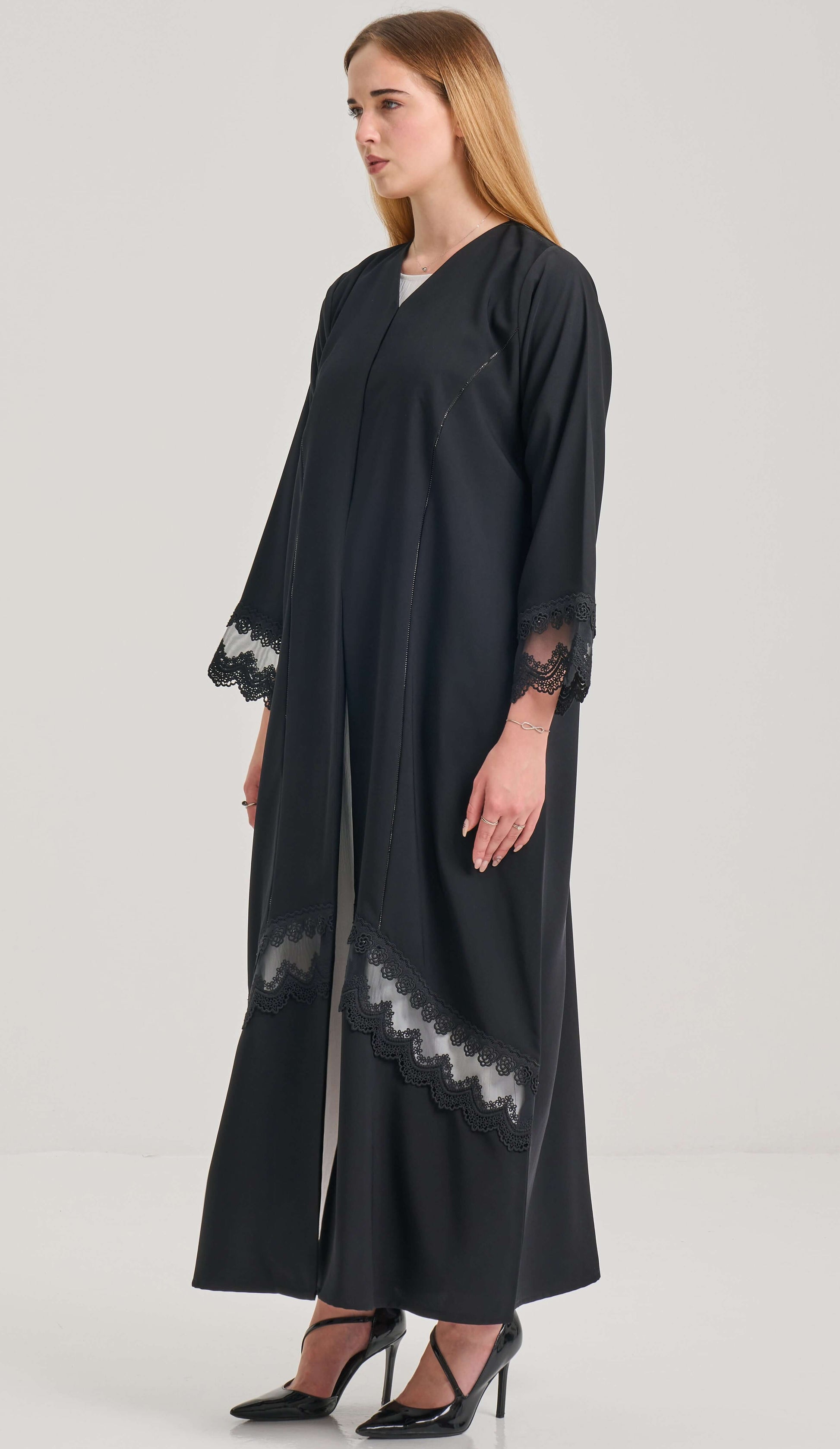 عباية سوداء بتفاصيل الدانتيل