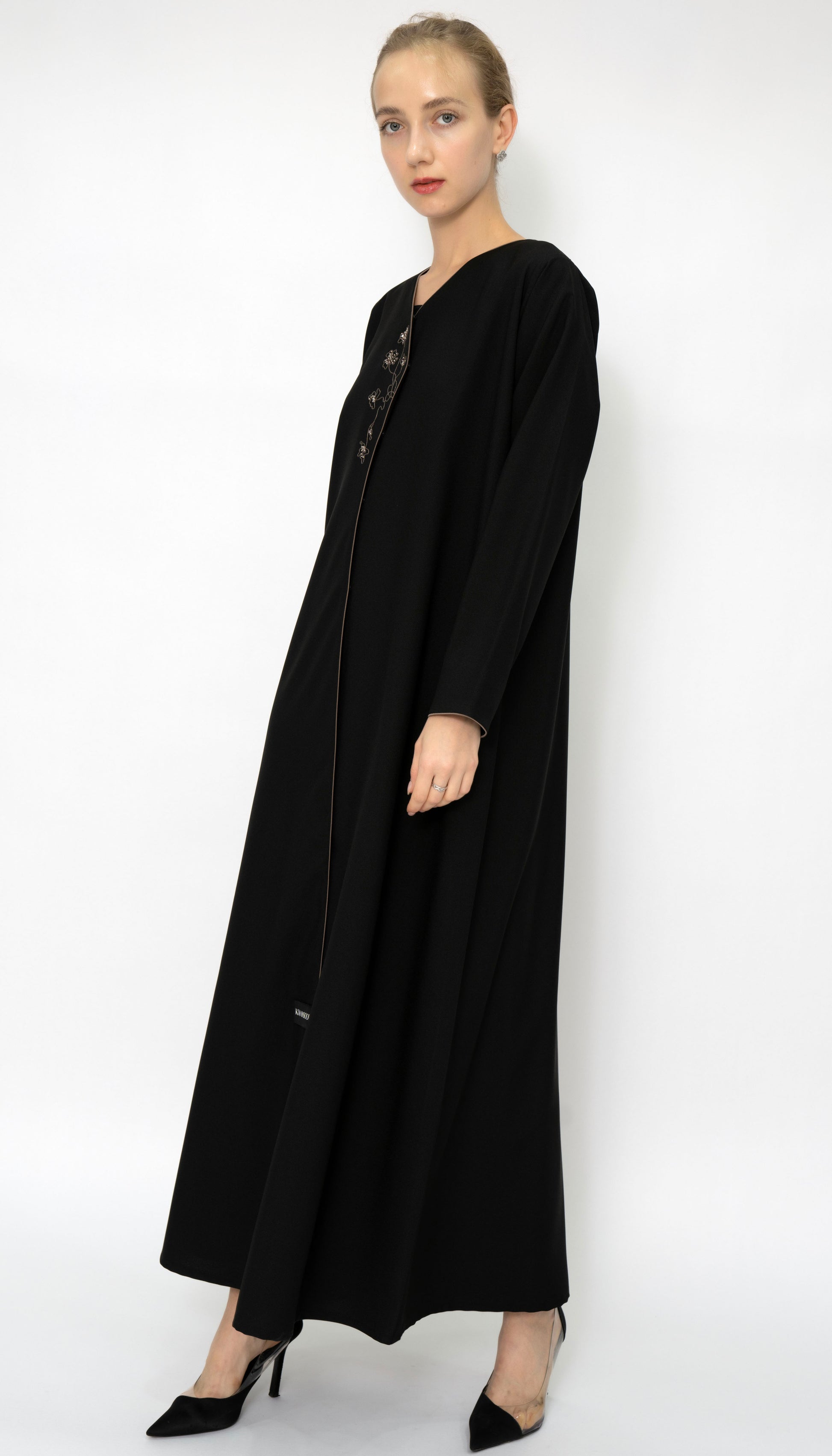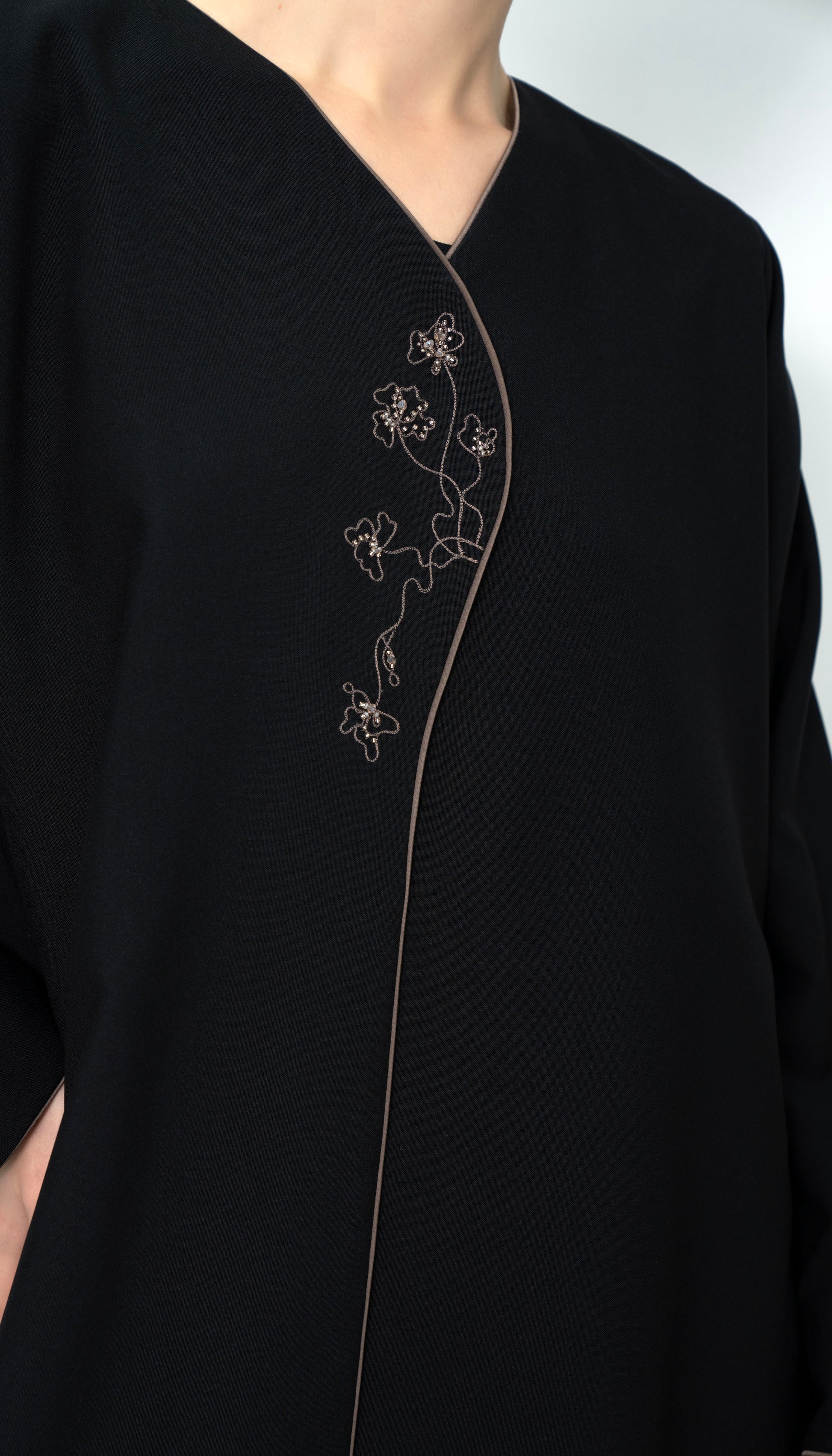 عباية سوداء متداخلة مع تطريز زهري ملون