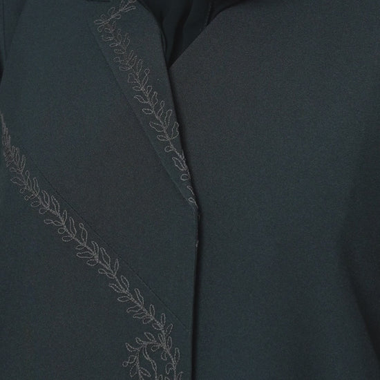 • Description: Black Blazer-Style Abaya with Fine Thread Embroidery