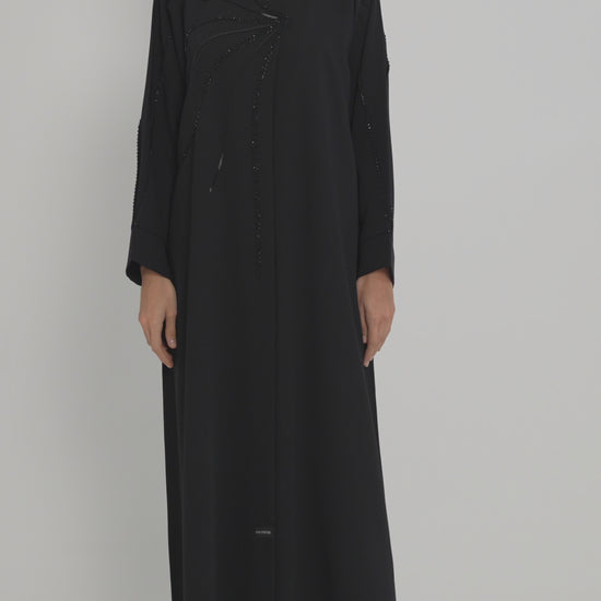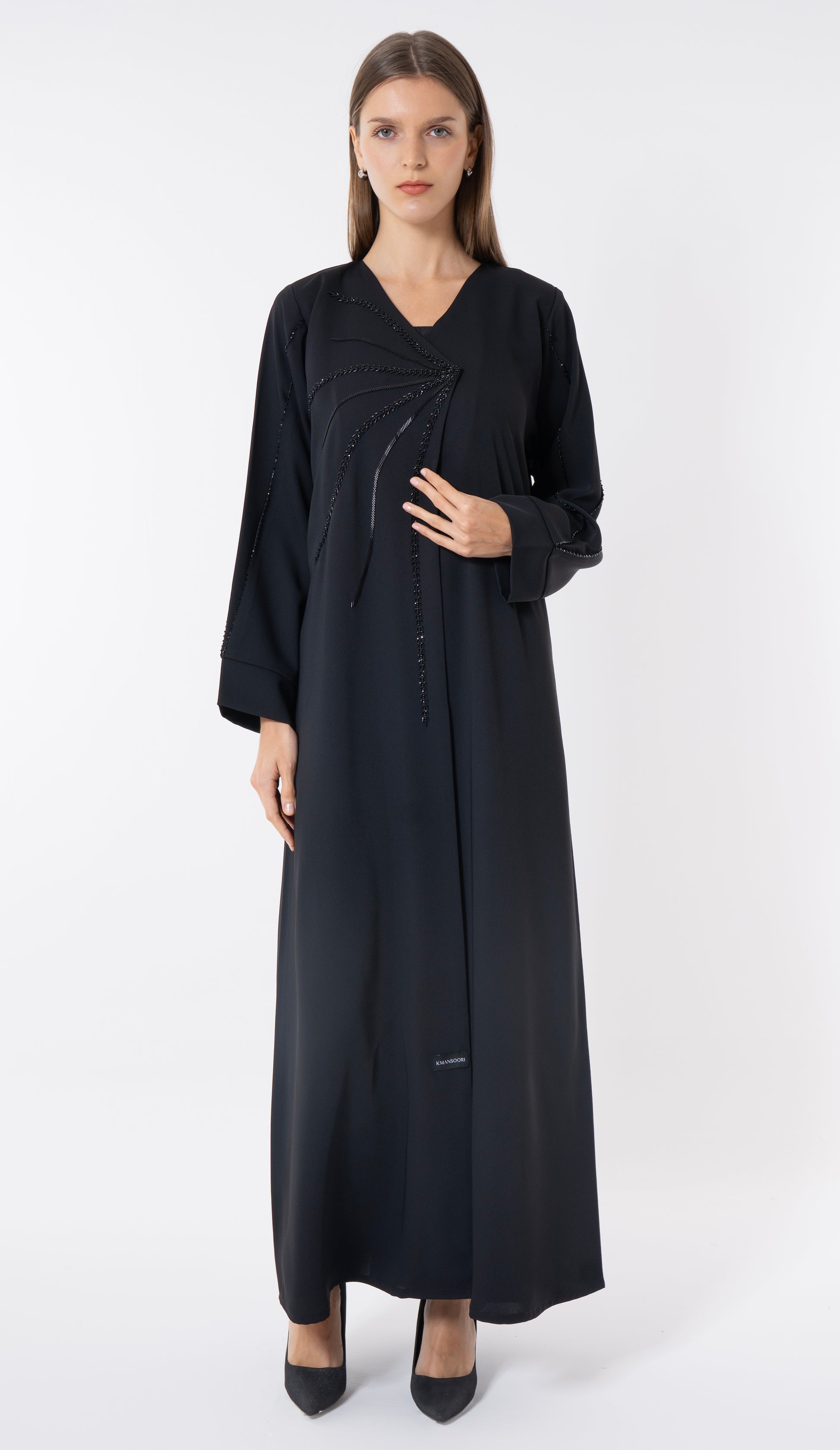 • Description: Black Overlap Abaya With Front Handwork Detailing