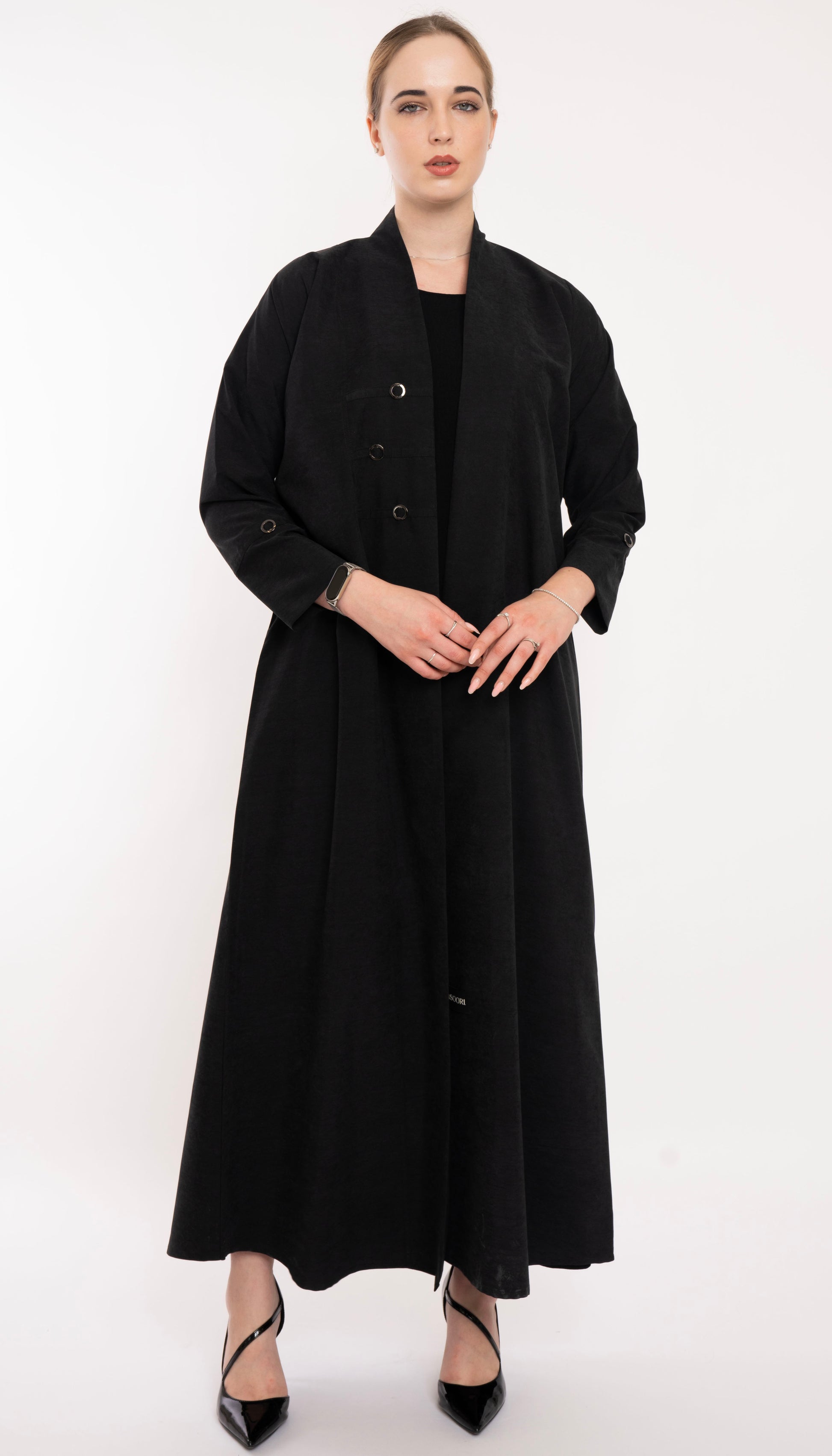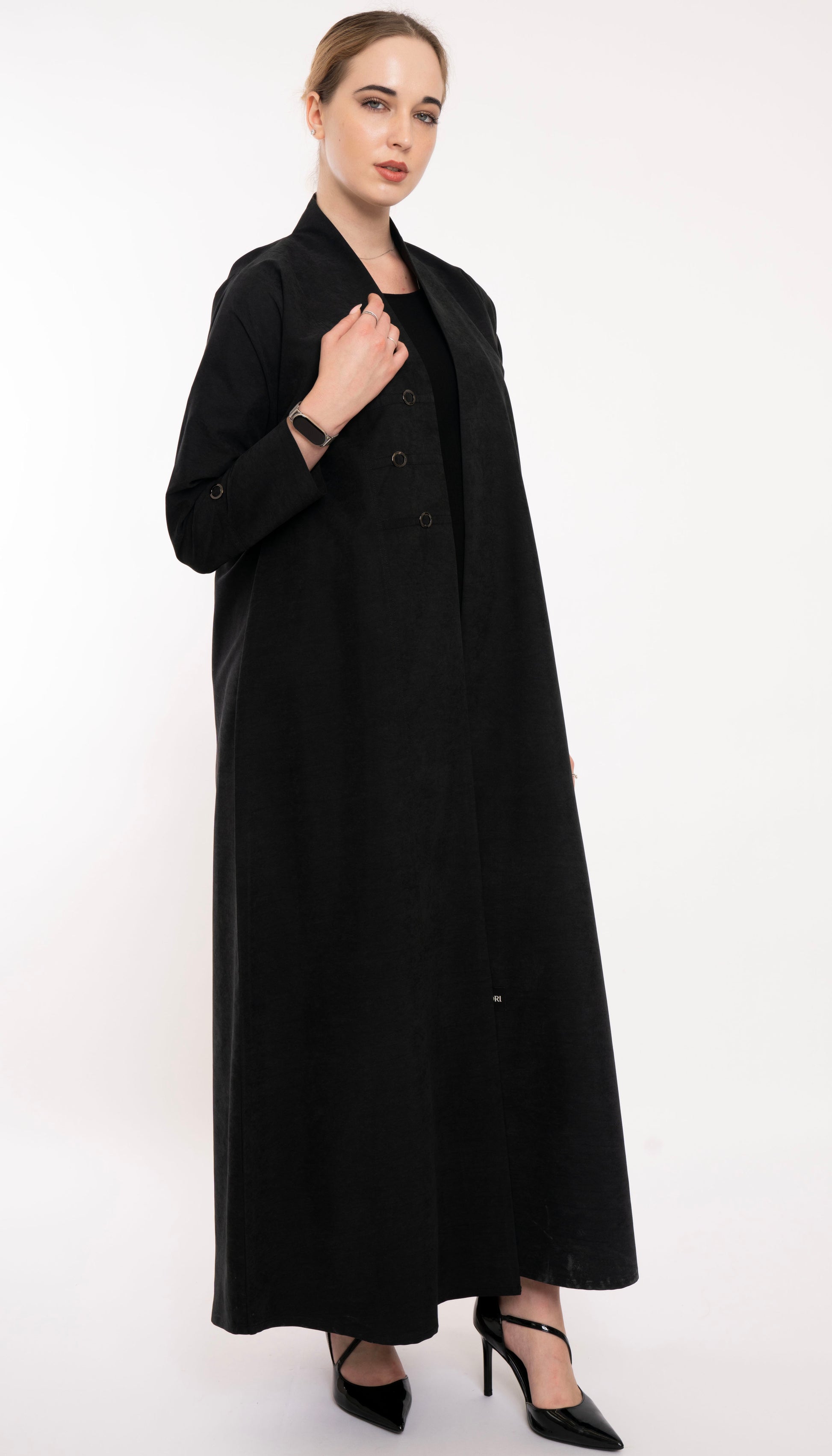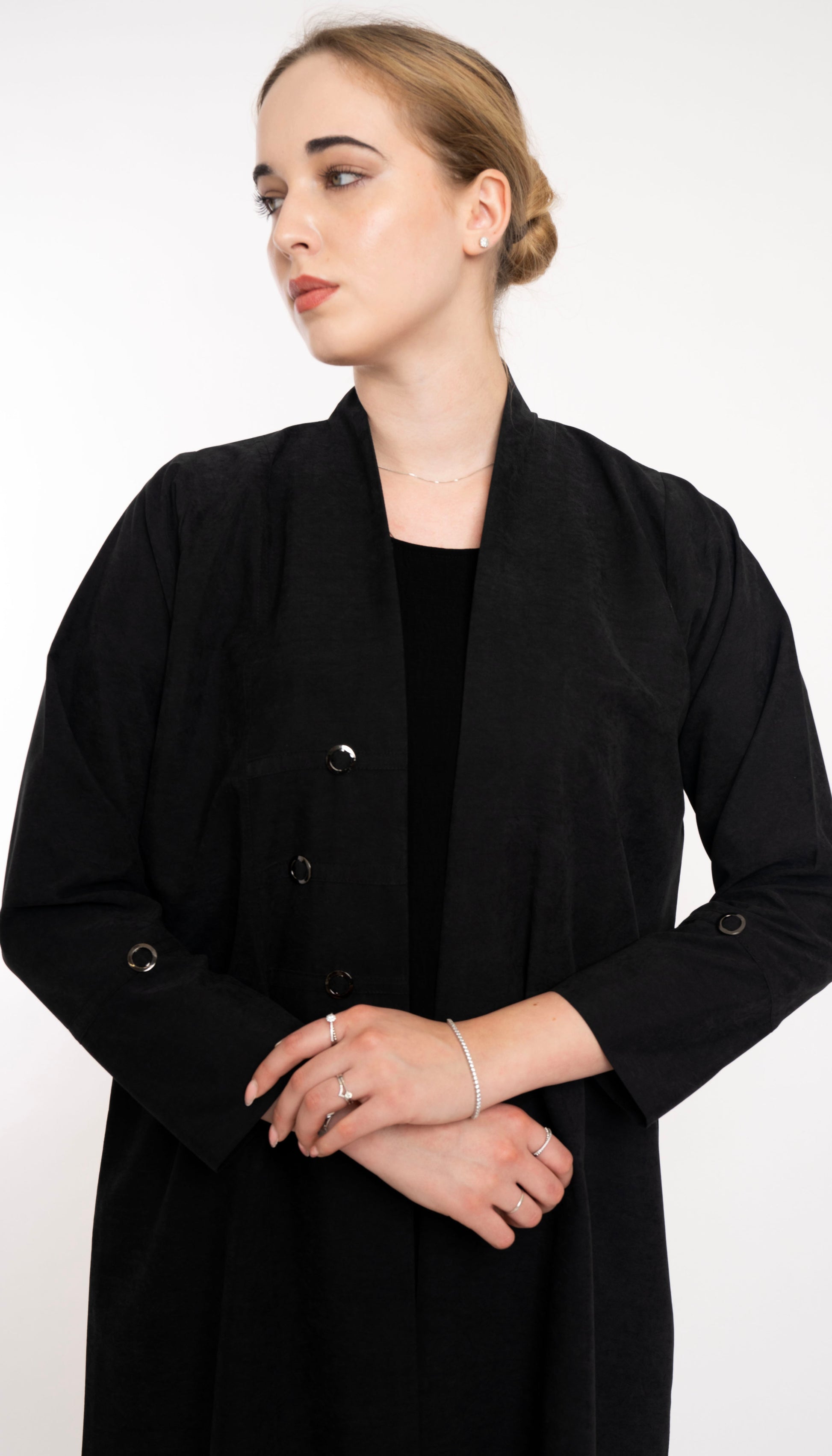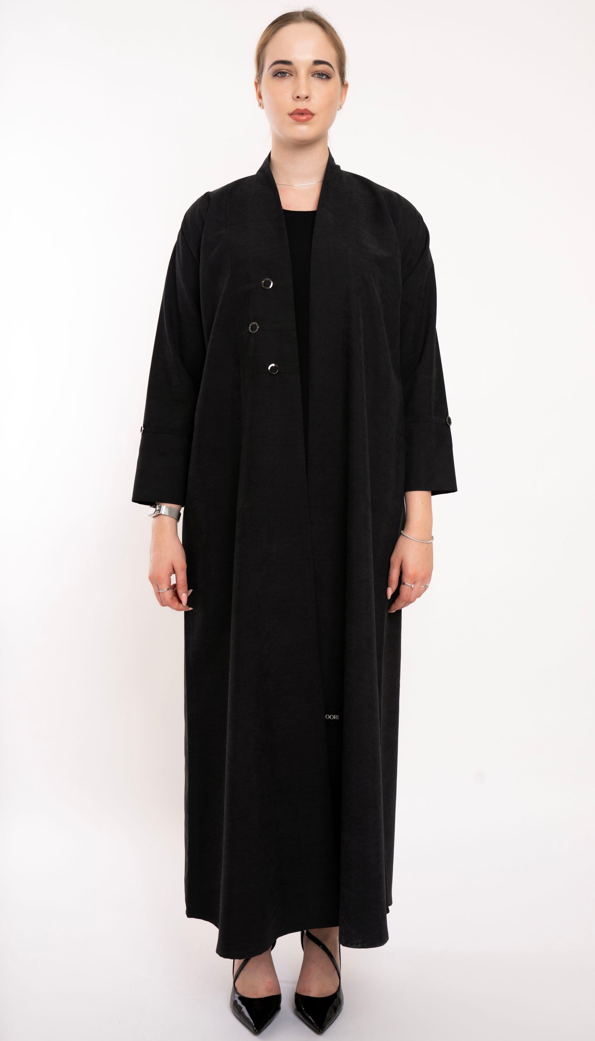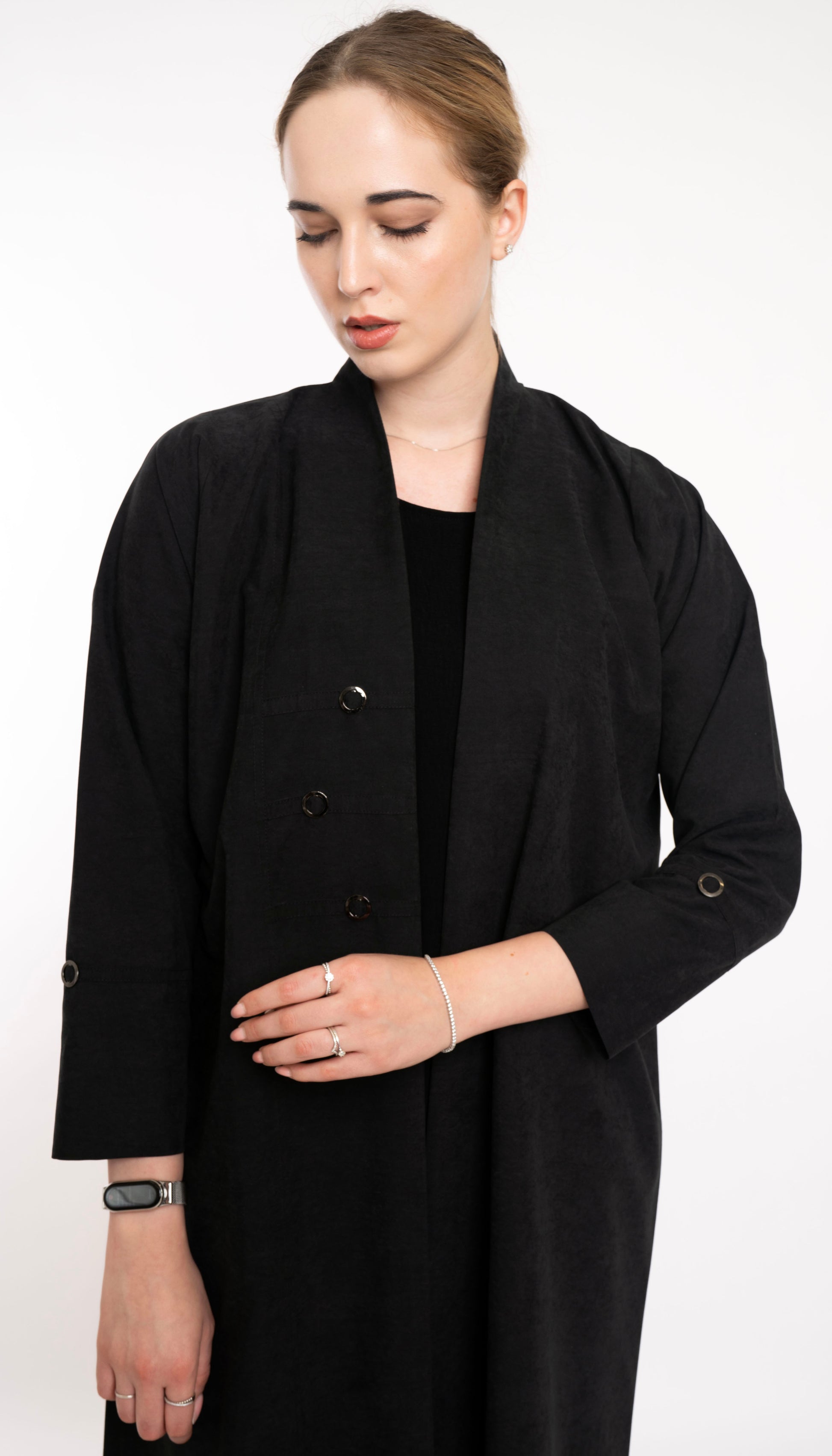 • Description: High Neck Pattern Abaya With Stylish Button Detailing On Front