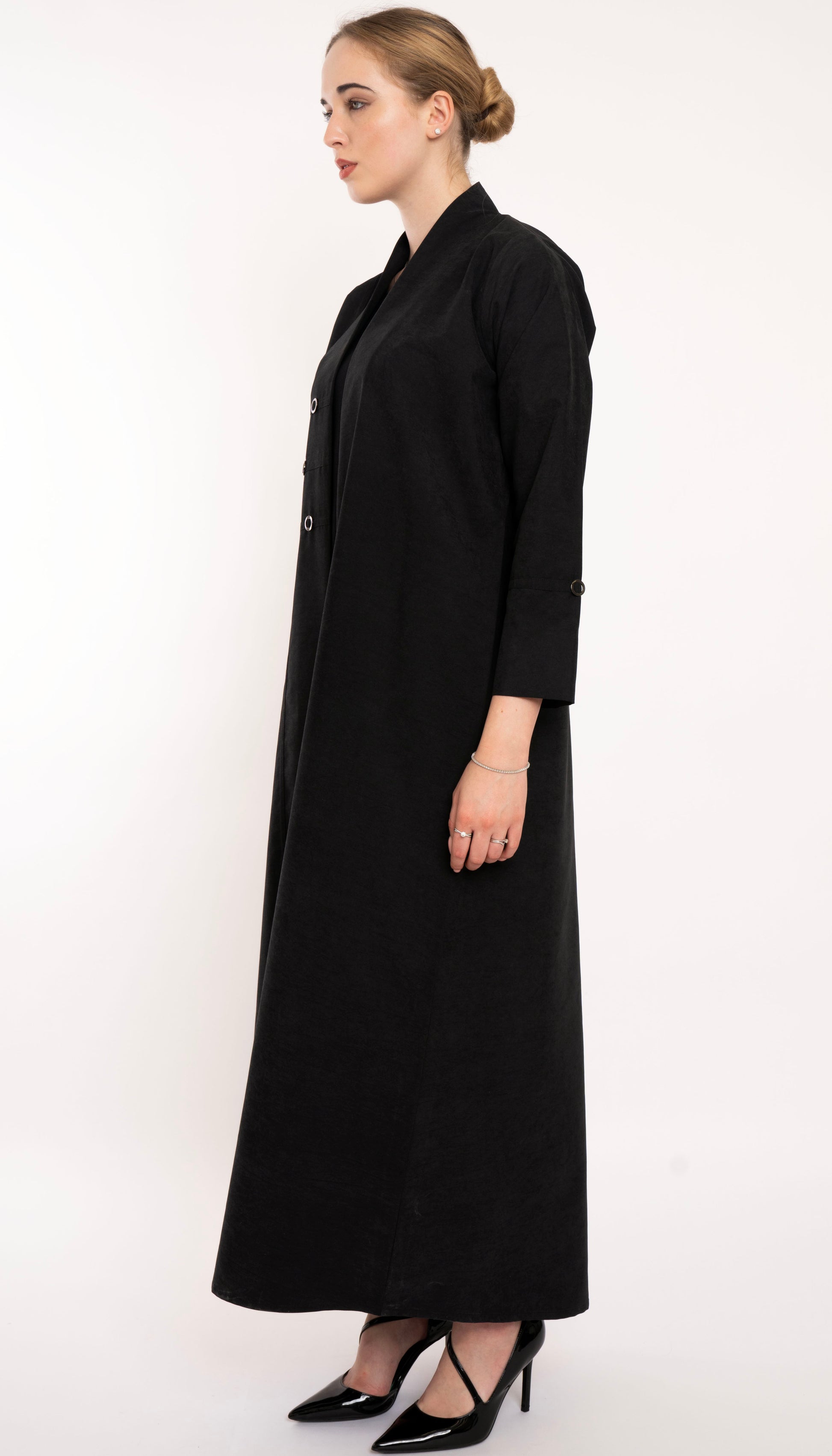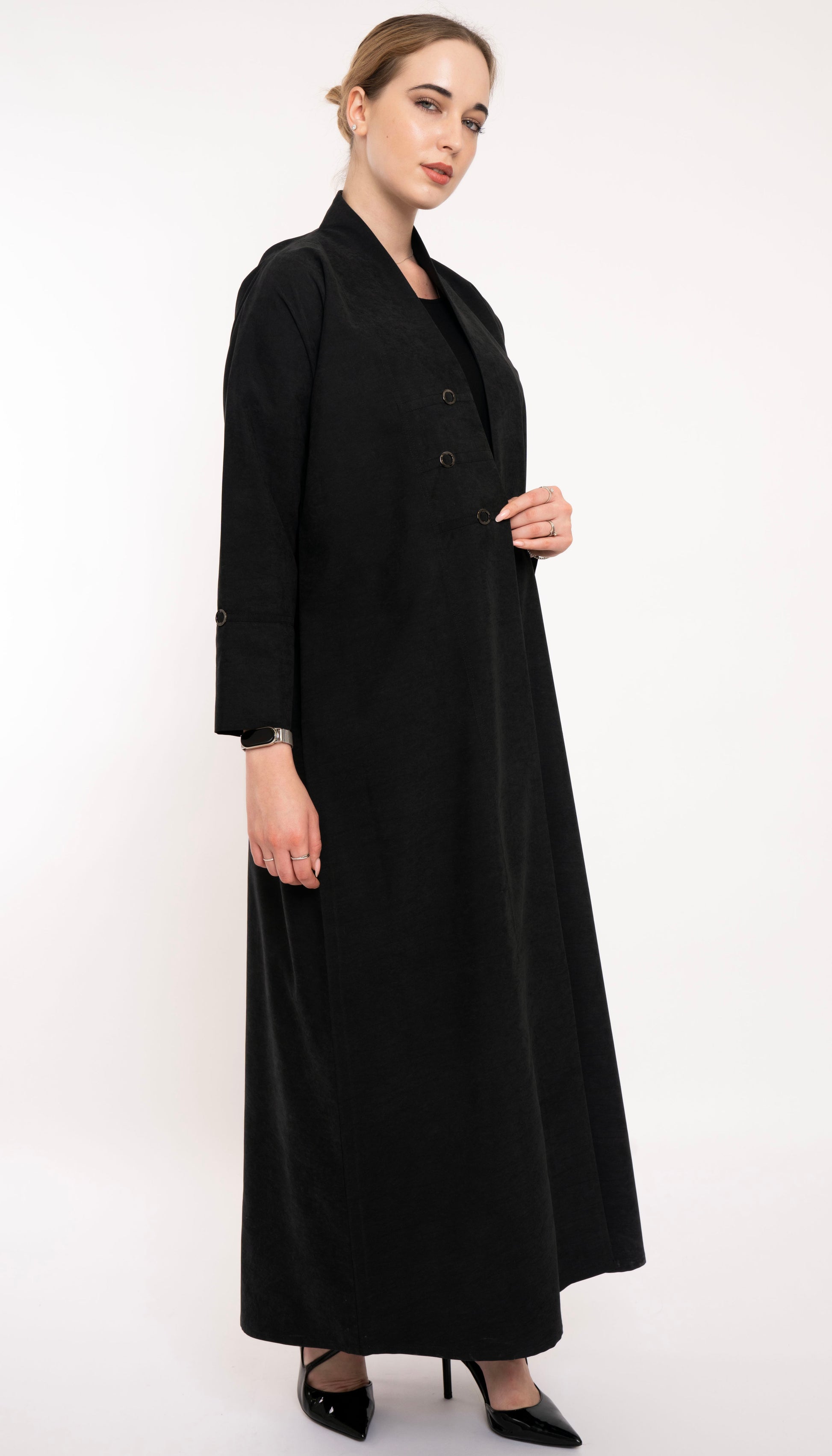 High Neck Pattern Abaya With Stylish Button Detailing On Front